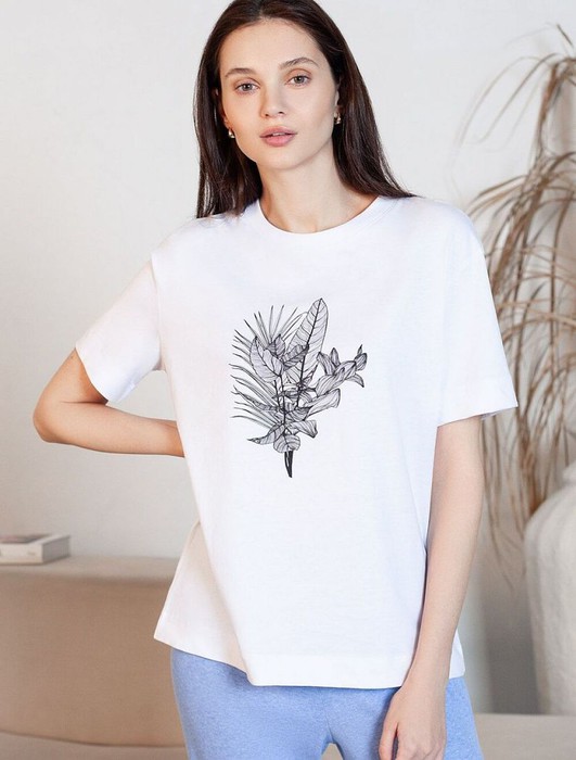 Футболка Vilatte D49.158 белый_тропики