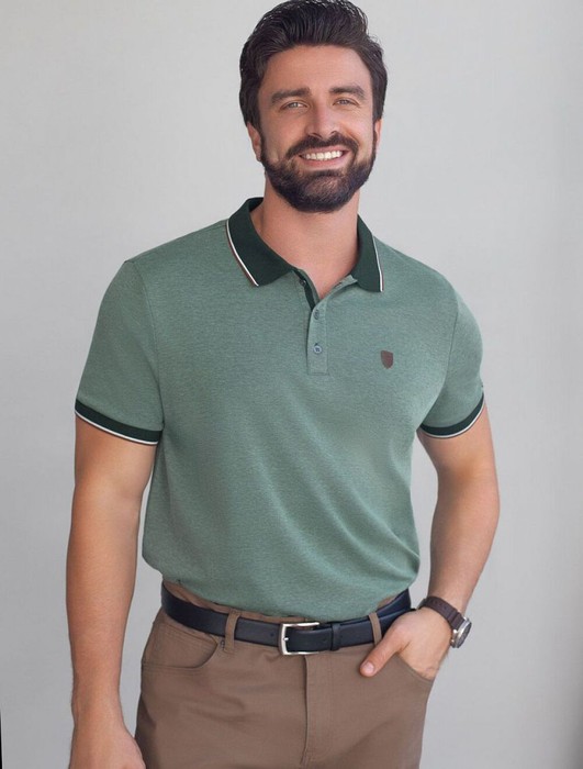 Стильная футболка поло с отложным воротником на пуговицах цвета хаки выполнена из полотна пике из двух оттенков нити, создающем эффект меланж. Мягкая и дышащая ткань обеспечивает комфорт в течение всего дня, позволяя коже дышать и поддерживать оптимальную воздухопроницаемость. Классический крой поло подойдет на разные комплекции фигуры, в том числе большие размеры, включая 58. Материал тянется, обеспечивает долговечность и сохраняет презентабельный внешний вид даже после многократных стирок.