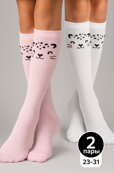 Гольфы с рисунком Леопард для девочки — нежный акцент для стильного гардероба. В комплекте 2 пары: белого и розового цвета — универсальное сочетание для повседневных и нарядных образов.