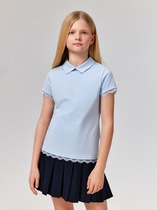 Трикотажная школьная блузка для девочки приталенного силуэта,