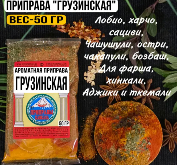 ВКУСОВЫЕ КАЧЕСТВА: Мы разработали замечательный состав грузинской приправы, в котором есть прекрасное сочетание именно грузинских специй, которые отличаются пряным вкусом и ароматом. На вкус приправа не острая.