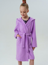 Халат с тонким капюшоном. Изготовлен из набивного хлопкового трикотажа футер петля. С помощью пояса можно регулировать посадку по фигуре. Сверху застёжка на кнопку. Края изделия обработаны мягким кантом. На боку накладной карман, уходящий в шов. Оригинальная набивка выполнена из стойких гипоаллергенных текстильных красителей. Все трикотажные полотна производятся в соответствии с нормами швейцарского сертификата ЭкоТекс.