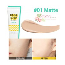 ББ-крем SPF30 PA++ Новинка от Holika Holika Holi Pop BB Cream No.Matte– легкие бб-кремы для ежедневного применения. Позволяют создать естественный макияж без утяжеления кожи. Легко распределяются, быстро подстраиваются под тон кожи, сливаются с ней, не оставляя границ, делают кожу гладкой и шелковистой.Holika Holika Holipop BB Cream Matte – матирующий бб-крем.Справится с жирным блеском, продлить стойкость макияжа, сохранить его в течение длительного времени безупречным, а лицо свежим и ухоженным помогает матирующий бб-крем. Экстракты центеллы азиатской, портулака и другие натуральные компоненты способствуют нормализации работы сальных желез, контролируют появление жирного блеска. ББ-крем успокаивает и смягчает кожу, оказывает противовоспалительное и оздоравливающее действие, поэтому идеален для жирной и комбинированной кожи.