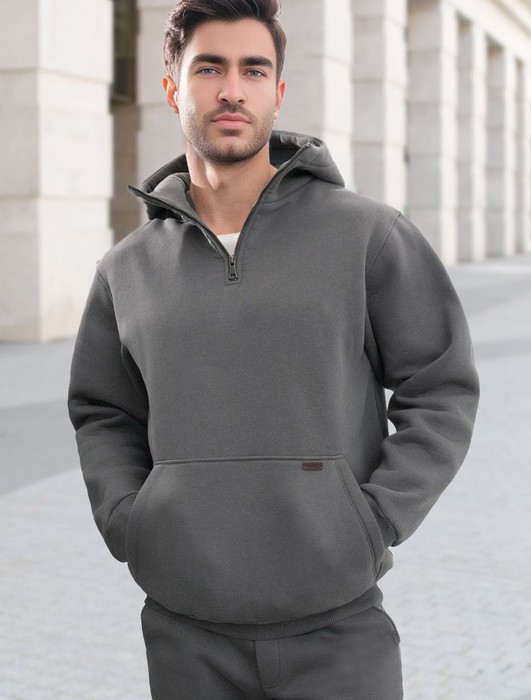 Худи с воротом на молнии из теплого футера-трехнитки