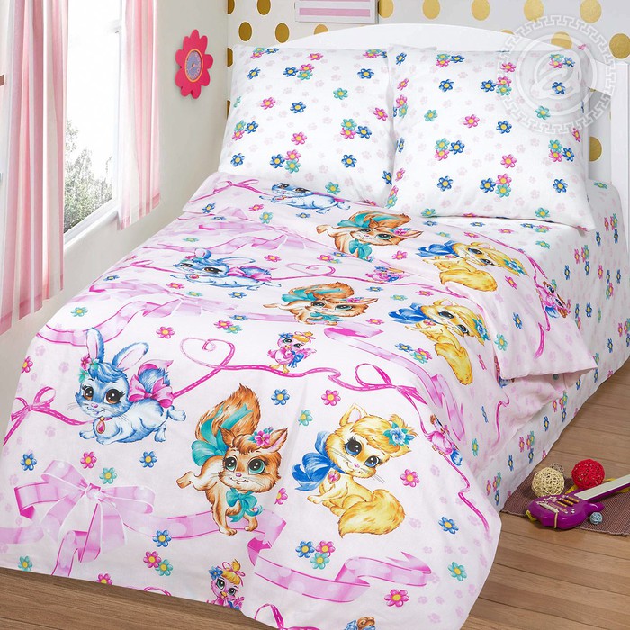 Как хочется окутать маленькую принцессу любовью и заботой даже ночью. Создать приятную атмосферу для отдыха девочки поможет веселый и озорной комплект «Хвостики». Розовые ленточки, цветочки на подушечках и добрые зверушки с бантиками выглядят очень привлекательно. Постельное белье с таким рисунком вызывает желание поскорее окунуться в волшебный сказочный мир снов. Особая мягкость ткани окутывает малышку и не отпускает из своих объятий до самого утра.