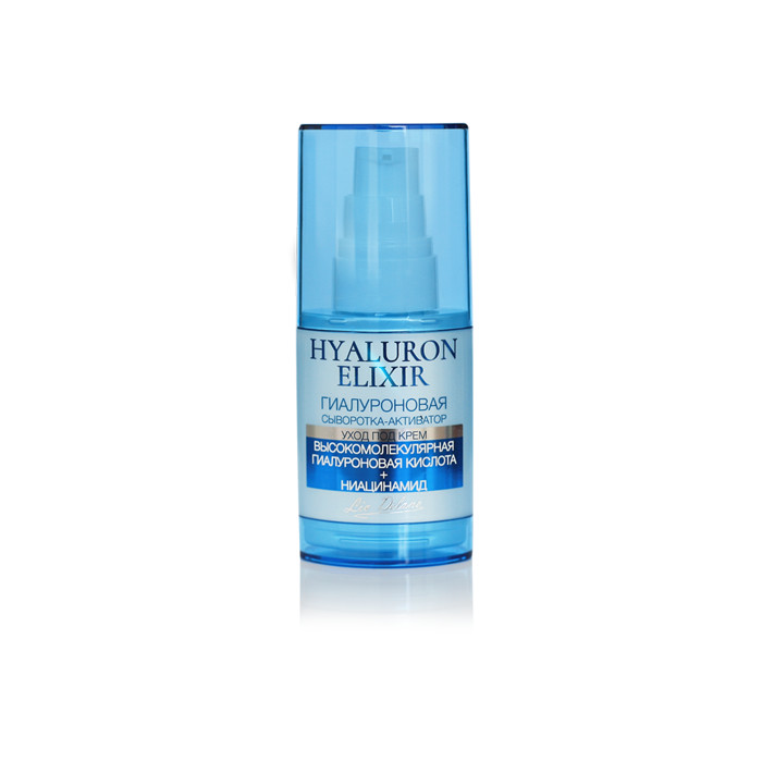 Эффективность средства увеличивается при использовании под кремы серии Hyaluron Elixir.