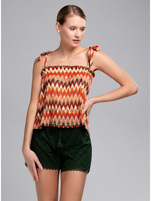 Майка цвета мультиколор с выразительным принтом создаёт живой и динамичный образ.