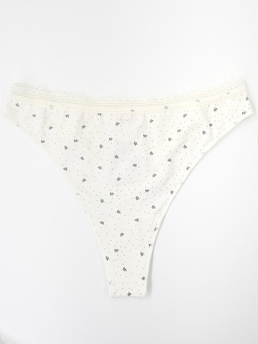 Стринги из мягкого хлопкового трикотажа — прекрасный выбор для ценителей женственного нижнего белья. Кружевная окантовка с фестонами, нежный оттенок белого и акцент на открытых ягодицах придают образу неотразимую притягательность, а небольшое количество эластана в составе делает белье долговечным и тянущимся. Мягкая резинка не оставляет следов на коже, а материал подходит даже для чувствительной кожи.