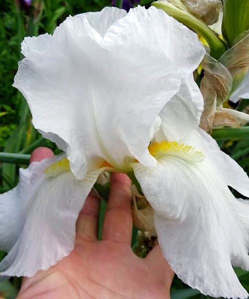 Ирис Клифс оф Дувр порадует садоводов изящными соцветиями сложной формы. В мае на кустах высотой до 100 сантиметров распускаются цветы с белоснежными лепестками и золотистой серединкой. Цветы на длинных стеблях можно срезать для составления роскошных букетов.