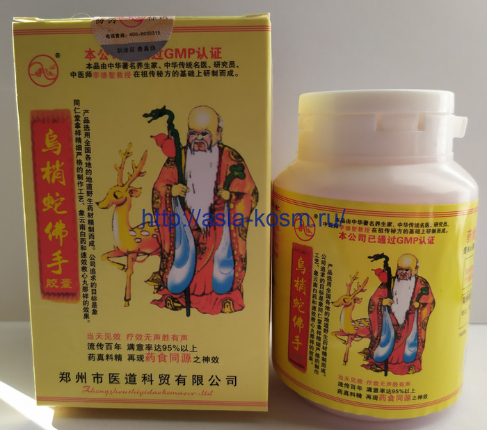 Китайский лечебный препарат на основе составляющих традиционной китайской медицины для лечения заболеваний суставов и мышц. Состав: крысиная змея (ушаошэ), палласов щитомордник (фушэ), сирень (динсян), плод цитрона «пальцы Будды» (фошоу), финик ацзяо, семя персика (таожэнь), семя финика (цзаожэнь), плоды амомума (шажэнь), устрица (мули), ямс китайский (шаньяо), солодка (ганьцао)и т.д.