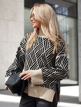 Свитер с боковыми разрезами жаккардовой вязки с кашемиром