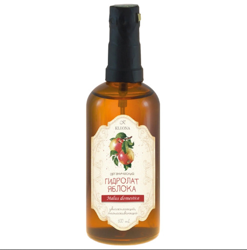 Состав: 100 % органический продукт паровой дистилляции плодов яблони домашней (Malus domestica). В зависимости от сорта яблок гидролат может иметь разные оттенки и интенсивность аромата.