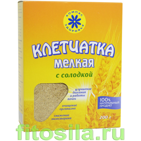 Мелкая клетчатка с солодкой сохраняет в себе все полезные для организма свойства, присущие мелкой клетчатке. Она оптимизирует все стороны деятельности кишечника: улучшает переваривание пищи, создает условия для попадания биологически активных веществ в циркулирующую по телу человека кровь, улучшает тонус мускулатуры кишечной трубки, нормализует микрофлору. Мелкая клетчатка с солодкой естественным образом поддерживает нормальный уровень холестерина и сахара в крови. Благодаря введению в её состав известной лекарственной травы солодки мелкая клетчатка приобретает дополнительные свойства. Она нормализует взаимодействие эндокринной, иммунной и центральной нервной систем, положительно влияет на работу легких, почек и мочевого пузыря, улучшает дыхательную функцию. Восстанавливая тонкое взаимодействие между сердцем, почками и легкими, солодка (в содружестве с мелкой клетчаткой) регулирует водно-солевой обмен, избавляет от задержки жидкости и солей в организме. Дыхание становится свободнее, а это облегчает работу сердечно-сосудистой системы. Мелкая клетчатка с солодкой - ежедневная естественная забота о себе.