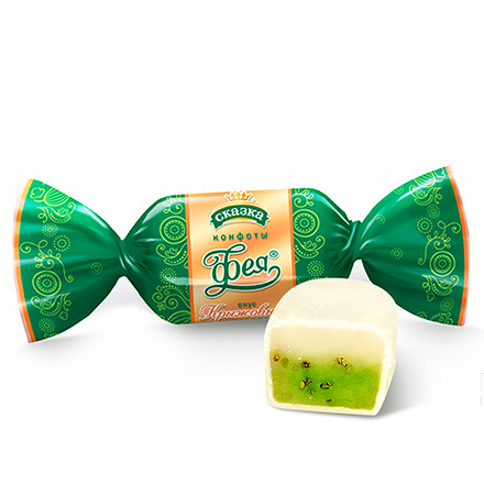 Двухслойные конфеты «Сказка» Фея со вкусом крыжовника с желейным корпусом. Изящные желейные кирпичики с фруктово-сливочным вкусом, с добавлением семян чиа и покрытые хрустящей белой глазурью. Конфеты хороши с чаем, лимонадом, а также в качестве самостоятельного сладкого лакомства.