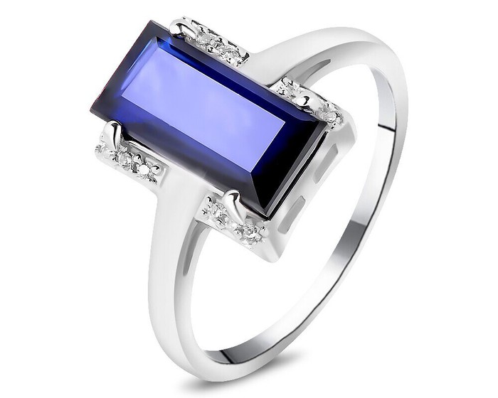 Кольцо, арт.658762 Серебро Серебро 925, р. 18, 2,86 гр., 1 сапфир корунд багет 6х12 мм/3.48 ct.
