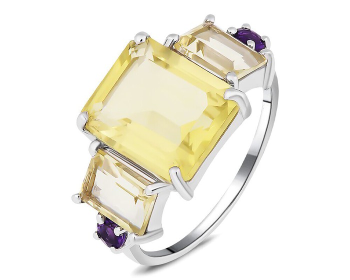 Кольцо, арт.656730 Серебро Серебро 925, р. 19.5, 4,06 гр., аметист , лимонный топаз