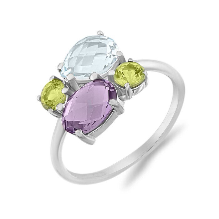 Кольцо, арт.654225 Серебро Серебро 925, р. 17, 2,14 гр., аметист , перидот , топаз