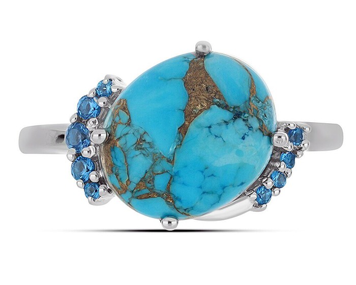Кольцо, арт.656721 Серебро Серебро 925, р. 18.5, 3,61 гр., бирюза пресс. , нанотопаз