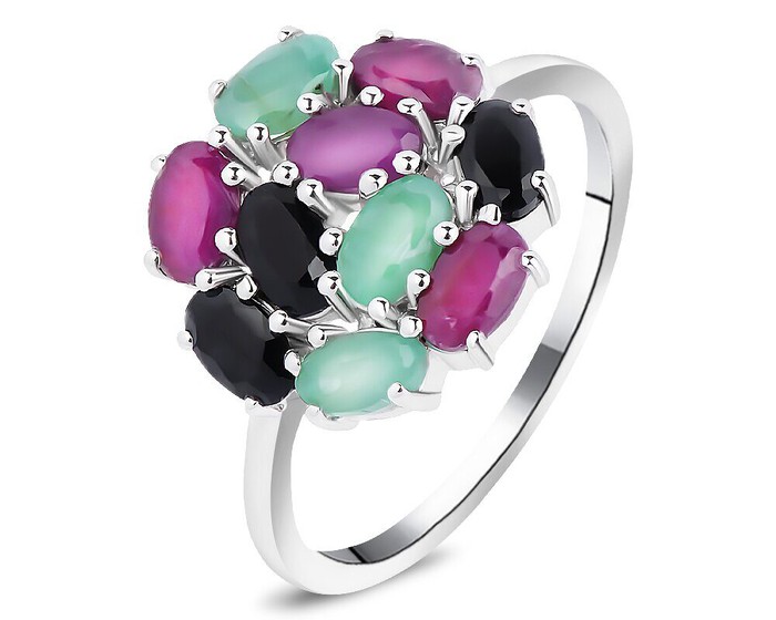 Кольцо, арт.658398 Серебро Серебро 925, р. 18, 3,05 гр., изумруд берилл , рубин корунд , сапфир корунд