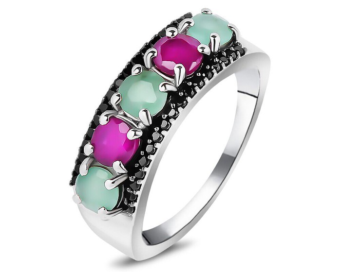 Кольцо, арт.658478 Серебро Серебро 925, р. 17.5, 3,3 гр., изумруд берилл , рубин корунд , шпинель
