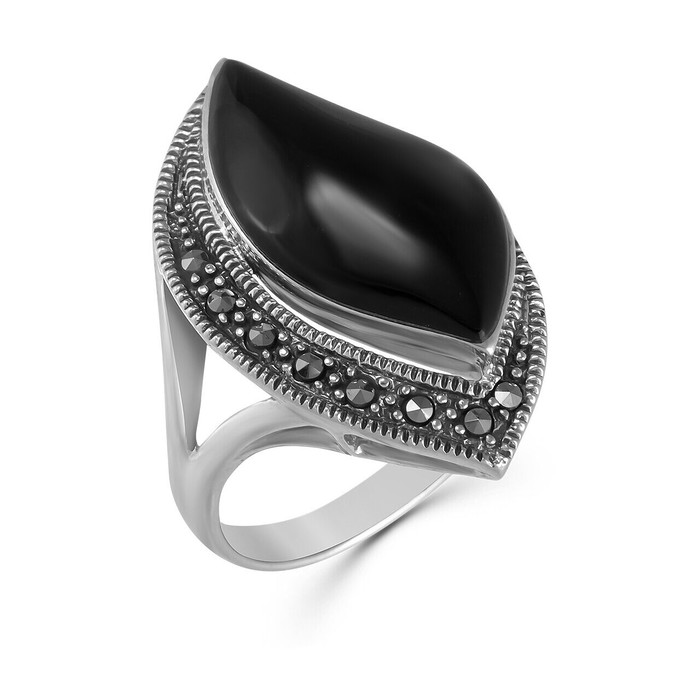 Кольцо, марказит , оникс, SL-AGA985