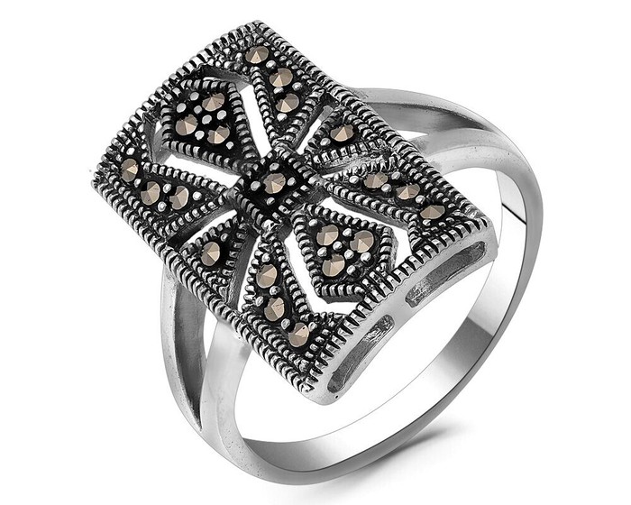 Вес: 6.42 г Вставка: Марказит Цвет камня: Серый Производство: Таиланд Покрытие: Оксидирование Размер колец: 19.520.52121.522 Количество: 11Кольцо, арт.656380 Серебро Серебро 875, р. 22, 6,42 гр., марказит