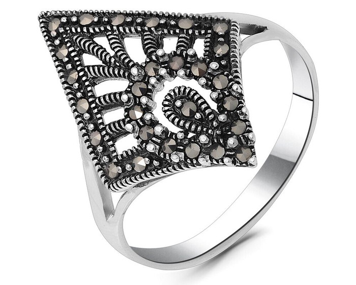 Вес: 5.26 г Вставка: Марказит Цвет камня: Серый Производство: Таиланд Покрытие: Оксидирование Размер колец: 2020.52121.522 Количество: 14Кольцо, арт.656421 Серебро Серебро 875, р. 22, 5,26 гр., марказит