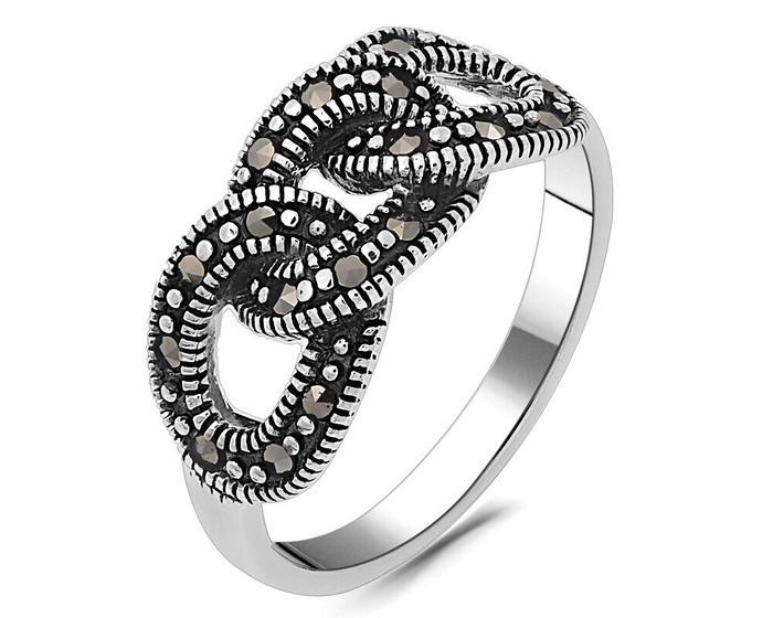 Вес: 3.81 г Вставка: Марказит Цвет камня: Серый Производство: Таиланд Покрытие: Оксидирование Размер колец: 16.517.5181919.5 Количество: 16Кольцо, арт.656391 Серебро Серебро 875, р. 19, 3,81 гр., марказит