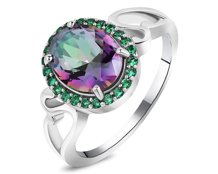 Кольцо, мистик кварц , наноизумруд, Вираж
