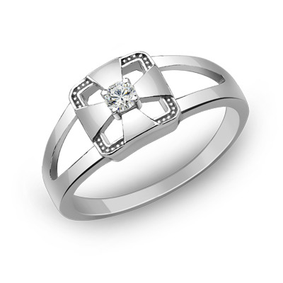 Кольцо с фианитом родированное серебро 925*