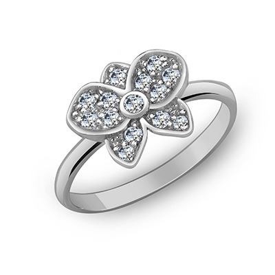Кольцо с фианитом родированное серебро 925*