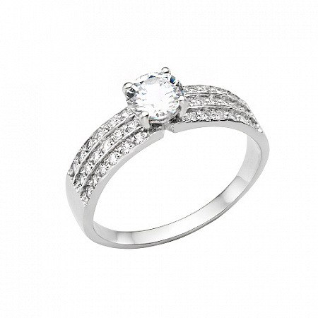 Кольцо с фианитом родированное серебро 925*