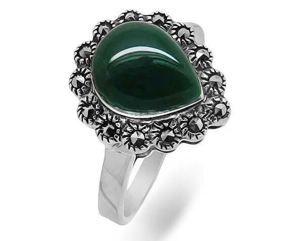 Кольцо, зеленый агат , марказит, SL-AGA80
