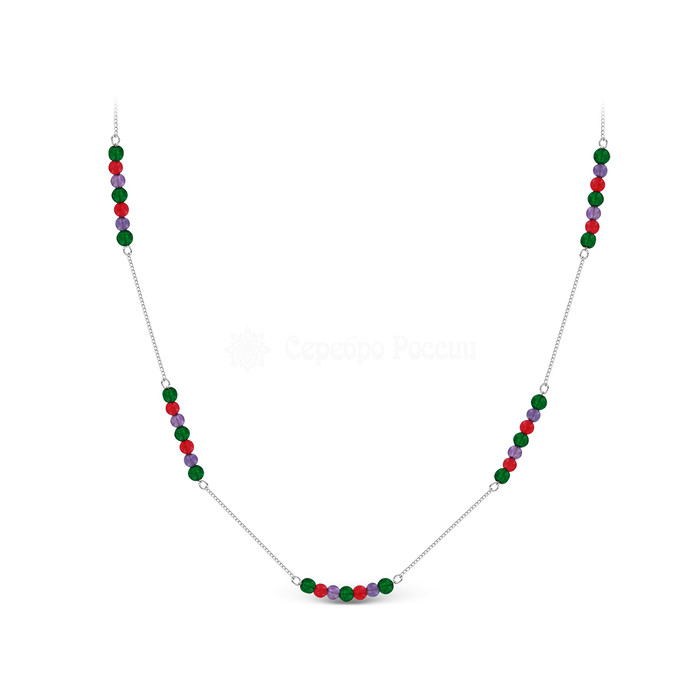Колье из серебра с нат, агатом и нат, аметистом родированное