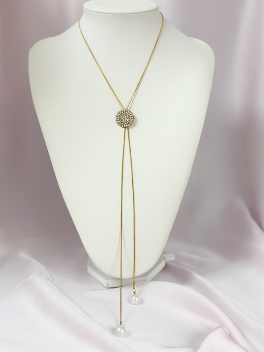 Длина колье 90 см. Диаметр круга: 2,1 см. Длина подвески регулируется