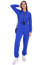 Женский летний комбинезон полуприлегающего силуэта с цельнокроенными рукавами и карманами в боковых швах, отрезной по линии талии, по спинке V-образный вырез с имитацией запаха. В комплекте съемный пояс из основной ткани.