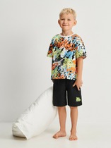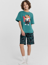 Комплект для мальчика: футболка в камуфляжном стиле и однотонные бриджи. Бриджи имеют удобные карманы с двух сторон. Расцветки: синяя и зеленая.