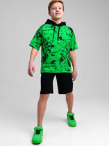 Легкий детский хлопковый костюм для мальчика. Рубашка прямого кроя с коротким рукавом и застежкой на кнопки. Классический воротник, накладные карманы. Свободные шорты на резинке со шнурком для регулировки. Удобные боковые карманы и карманы-карго.