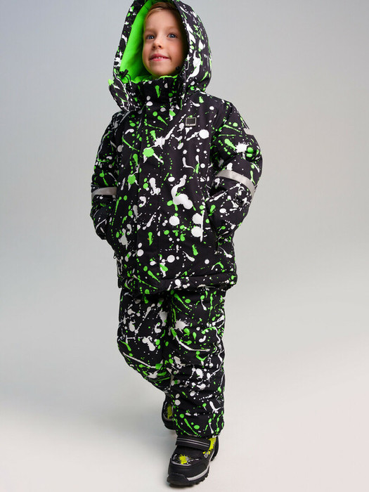 Мембранный материал делает этот яркий и модный комбинезон непромокаемым: мембрана не пропускает влагу снаружи, но выводит её изнутри, что крайне важно во время подвижных игр и занятий спортом.