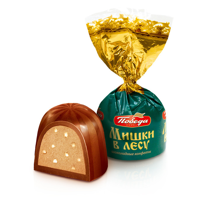 Конфеты «Мишки в лесу» на протяжении нескольких поколений являются символом семейного праздника и уютного чаепития в кругу самых близких. Рецепт этих шоколадных конфет от "Победы" – это насыщенная молочно-шоколадная начинка с хрустящим криспом в оболочке из нежного молочного шоколада.