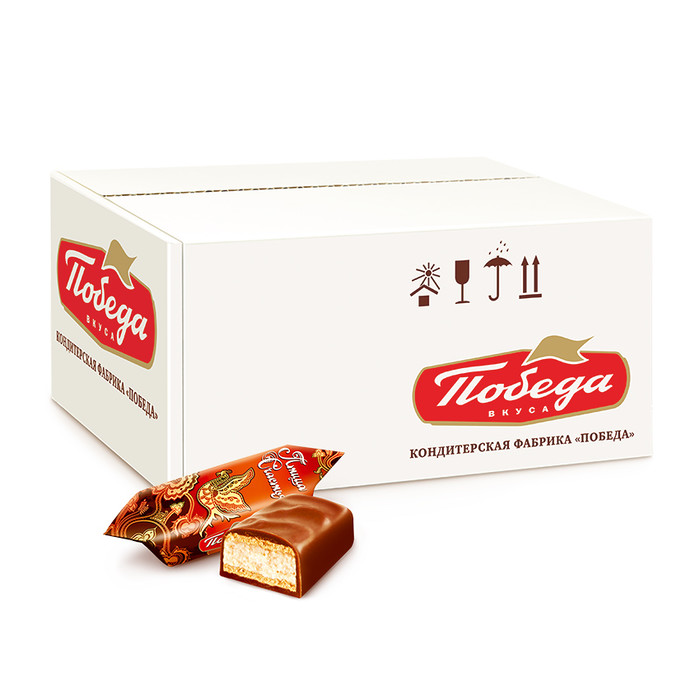 Конфеты со сказочным названием «Птица счастья» давно и заслуженно пользуются популярностью у потребителей. Классическая начинка пралине из тертого, слегка обжаренного, миндаля с хрустящей вафлей – также один из авторских рецептов фабрики «Победа».