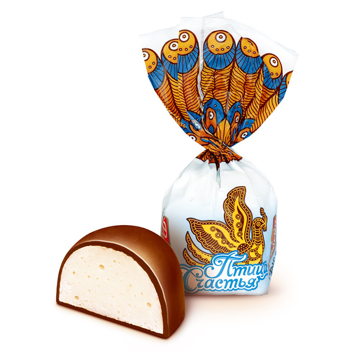 Воздушная текстура, бархатистый вкус, тонкий сливочный аромат, обволакивающее послевкусие. В составе нашего суфле: свежий яичный белок, сгущенное молоко, нежное сливочное масло. Именно поэтому суфле «Птица счастья» уже много лет среди самых любимых и популярных конфет у россиян.