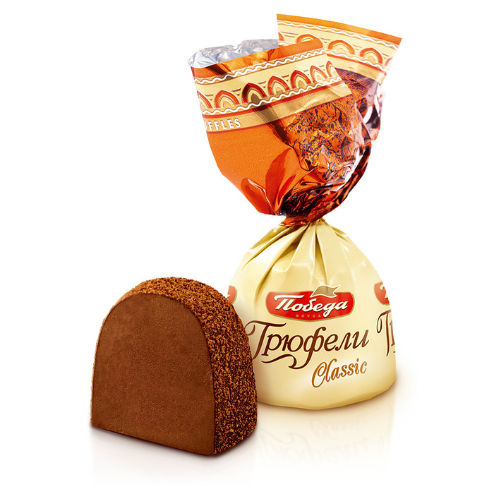Классические трюфели «Победа» созданы по традиционному рецепту. Нежное «сердце» из сливок и шоколада усыпано ароматным темным какао. Трюфель – это «король» шоколадного мира, премиальный продукт с богатой историей, восходящей к французскому кондитерскому искусству 19 века. Эти конфеты обладают удивительной способностью мгновенно создавать вокруг себя атмосферу праздника