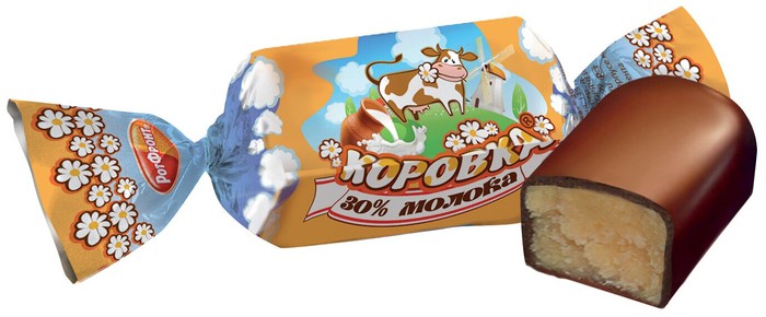 В «Коровке» от фабрики «Рот Фронт» еще больше молока! Любимый вкус конфет «Коровка» на 30% более сливочный и нежный. Молочная, почти белоснежная помадка с бархатистой тающей текстурой, покрытая шоколадной глазурью – сливочно-пломбирное удовольствие! Мягкие ароматные конфеты прекрасно сочетаются с черными и зелеными сортами чая, а также с кофе, особенно с черным кофе.