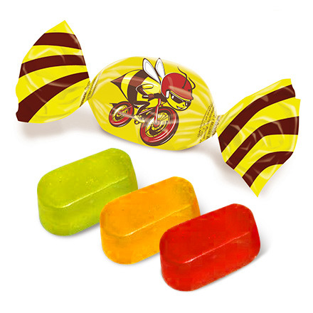 Желейные конфеты «Очумелый шмелик» – настоящее удовольствие для любителей ароматного жевательного мармелада. Неглазированные разноцветные брусочки с фруктовыми вкусами, в меру сладкие, плотные, упругие и в то же время мягкие. Три разных вкуса: лимон-лайм, черешня и грейпфрут. Хороши и к чаю и сами по себе.