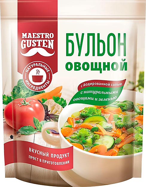 – 1 пачка «Maestro Gusten» = 5 литров готового бульона.