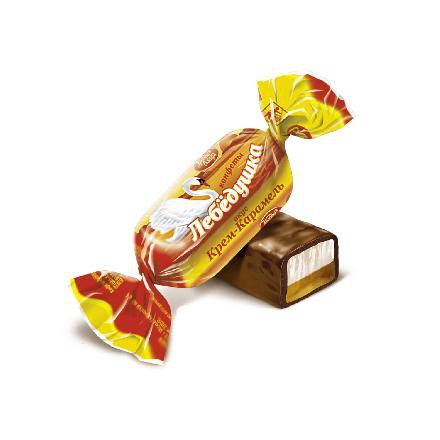 Конфеты «Лебедушка» вкус «крем-карамель» – это нежные желейные «кирпичики», покрытые шоколадной глазурью. Двухслойная начинка, по текстуре напоминающая мягкое желе или застывший крем. Белый слой – сливочно-ванильный вкус, который смягчает яркий карамельный слой. Яркий желто-оранжевый фантик в классической форме «бантика» манит не меньше, чем шоколадно-карамельный аромат самих конфет.