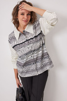 Заказать Контрастная блузка с контрастным вырезом и лепестками
