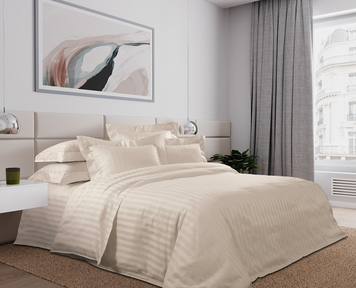 КОРОЛЕВСКОЕ ИСКУШЕНИЕ Постельное белье из Страйп-сатина Крем-брюле (Пакистан)