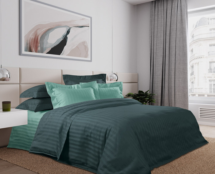 Совместные покупки Пермь Товары для дома и дачи Постельное белье — КОРОЛЕВСКОЕ ИСКУШЕНИЕ Постельное белье из Страйп-сатина Тархун мята (Пакистан)